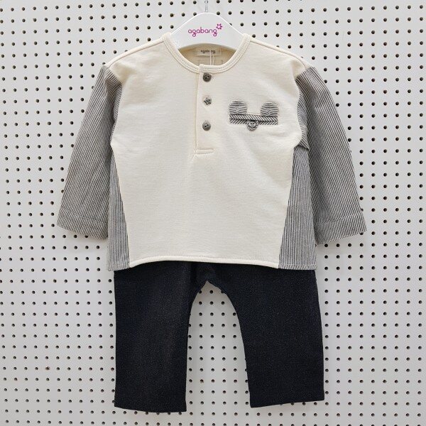 니트와 우븐이 함께 어우러져있는 셔츠로 일반셔츠의 신축성없는 단점을 보완하여 편하게 입힐수있는 옷입니다.