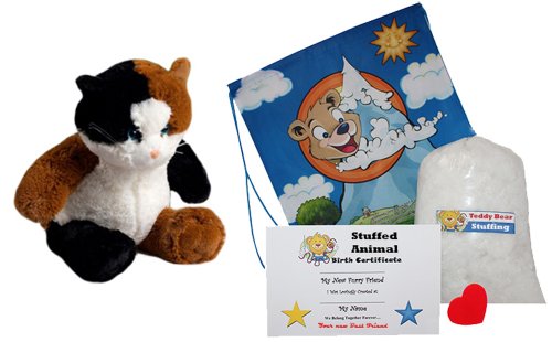 -. Feature : 15 inch Plush "Terry Cloth Calico Kitty" / Plush Animal Skin, Bag of Fluff Stuffing, Fabric Wishing Heart Insert, Birth Certificate, Super Cute Nylon String Bag Backpack / Easy Instructions, No Sewing Required, Self Sealing Closure, Super Soft Feel / Fits most 14 - 18 inch stuffed animal clothing and accessories. / Closure big enough for sound module insert or record your own sound module.
