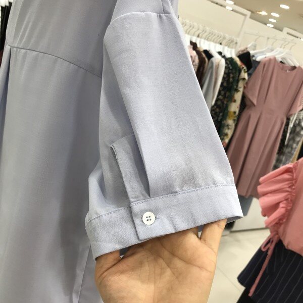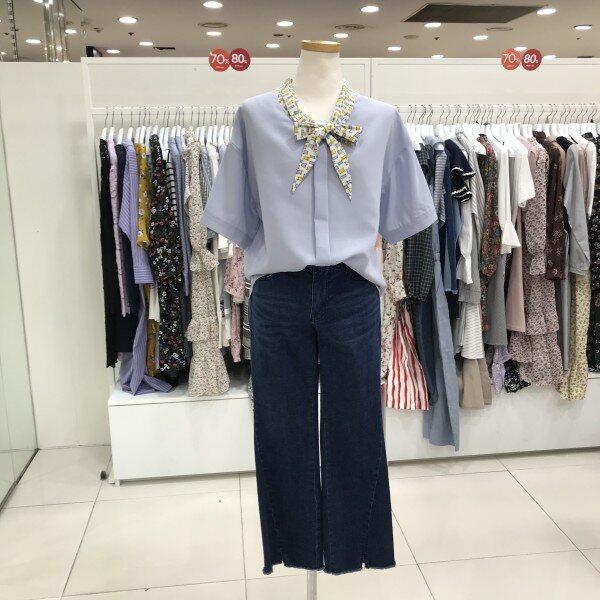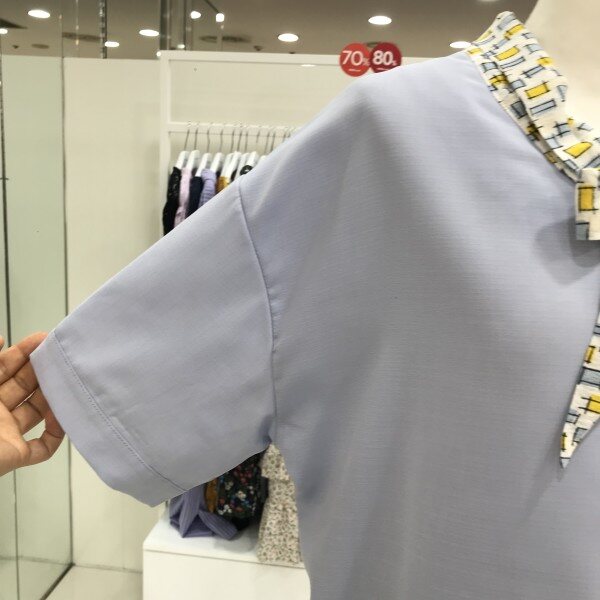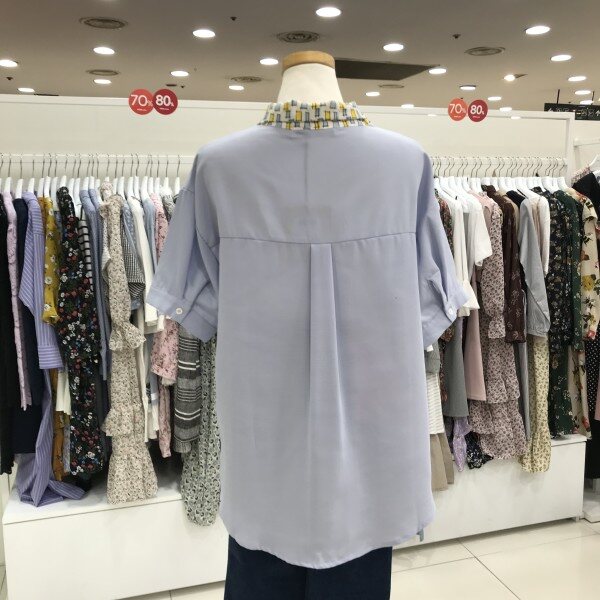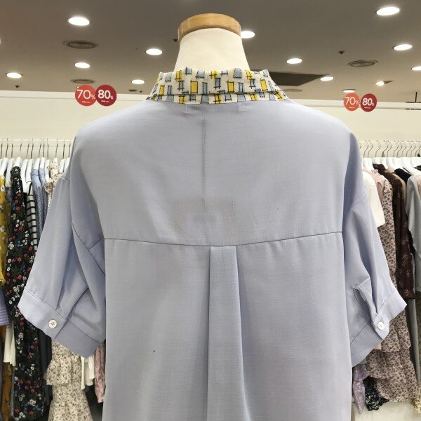 나염 카라 포인트 블라우스입니다심플하면서 깔끔한 디자인의 블라우스로 넥카라 나염으로 포인트를 주어 귀엽게 연출된답니다여유있는 핏감으로 편하게 착용가능하답니다뒤 라인이 언발란스 기장으로 앞쪽만 살짝 넣어 입으셔도 예쁘답니다총장 66cm(FREE)