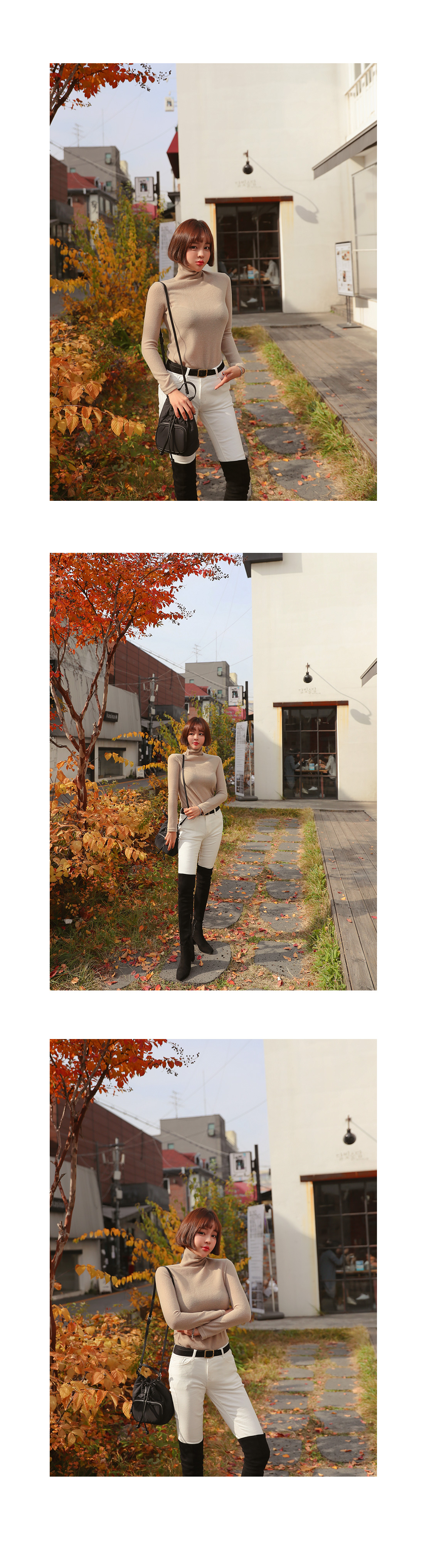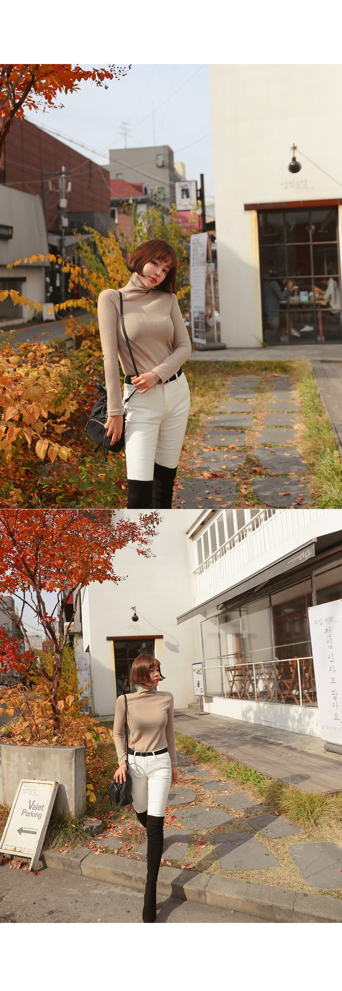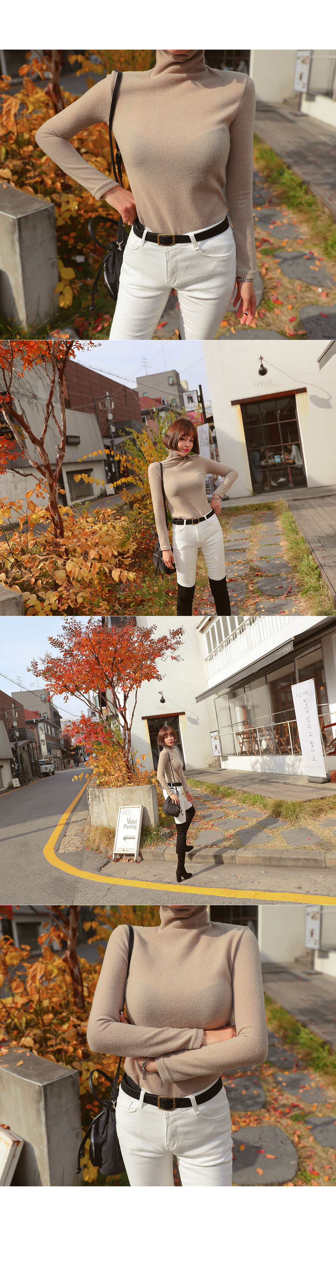 살짝 높게 올라오는 터틀넥 디자인으로 제작된 아이템이에요.