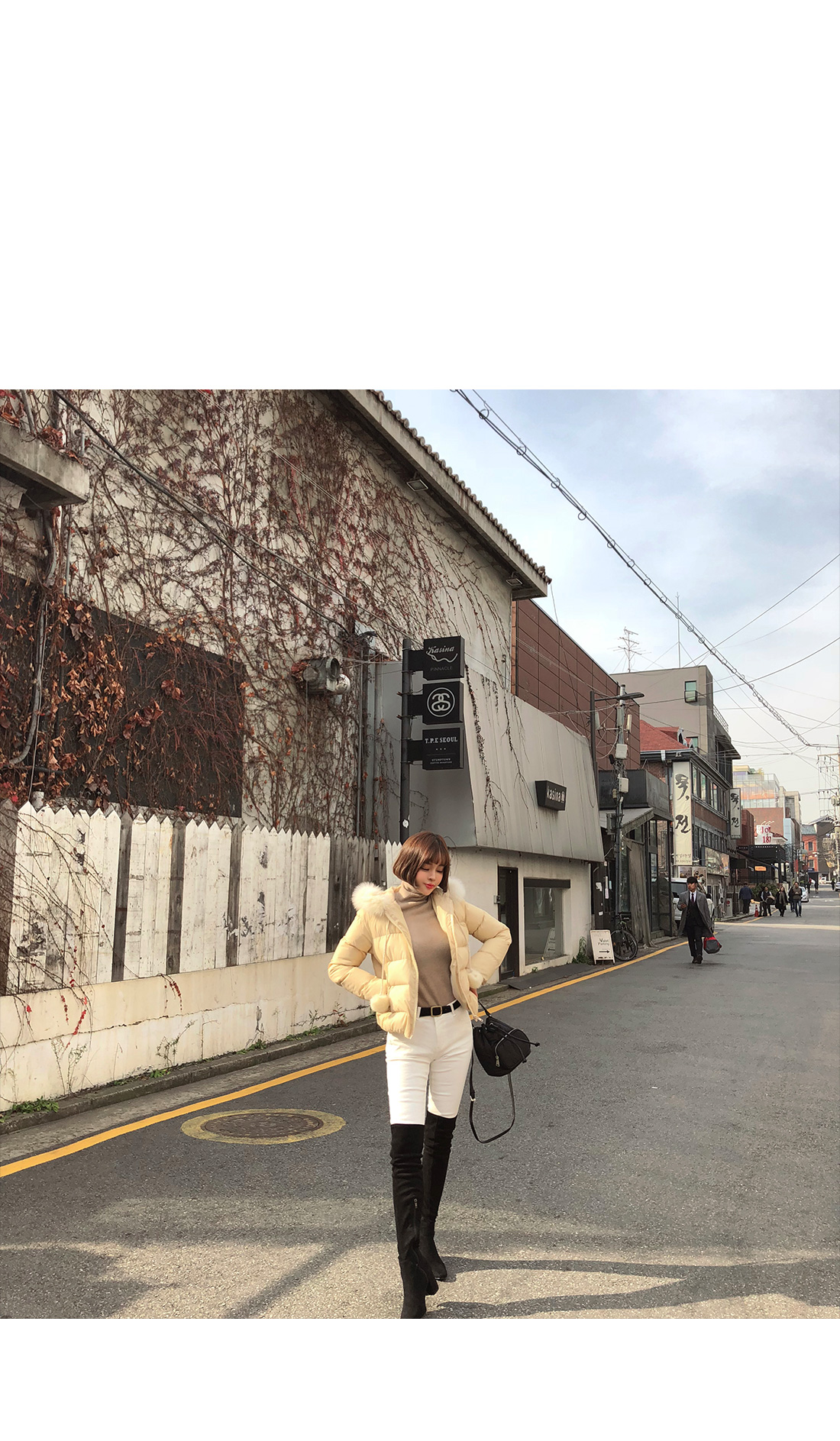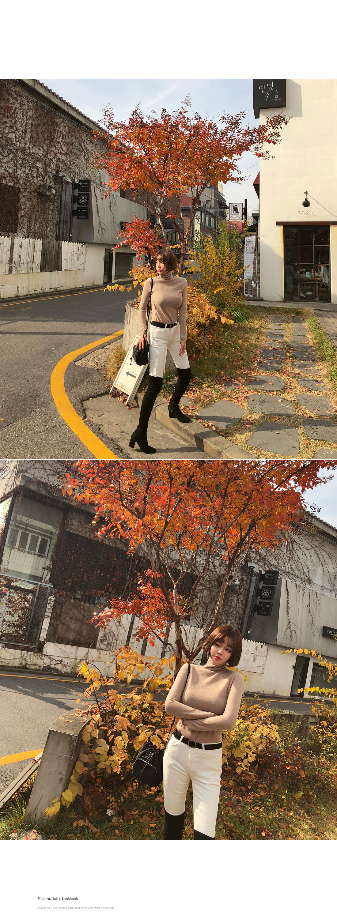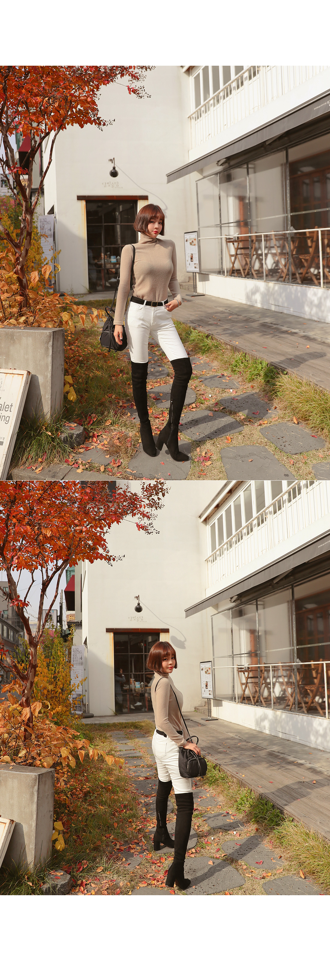 살짝 높게 올라오는 터틀넥 디자인으로 제작된 아이템이에요.
