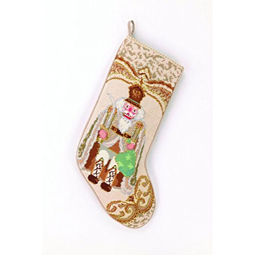 Vintage Style Gold Nutcracker with Sword Christmas Stocking, Wool & Velvet Needlepoint, 11 Inch X 18 Inch