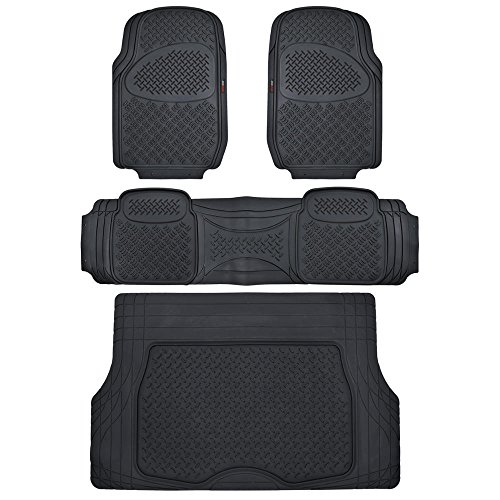 - Title : Motor Trend Odorless Black Heavy Duty SUV 4 Piece Floor Mats - Universal Fit 2 Row and Trim to Fit Trunk Cargo Liner