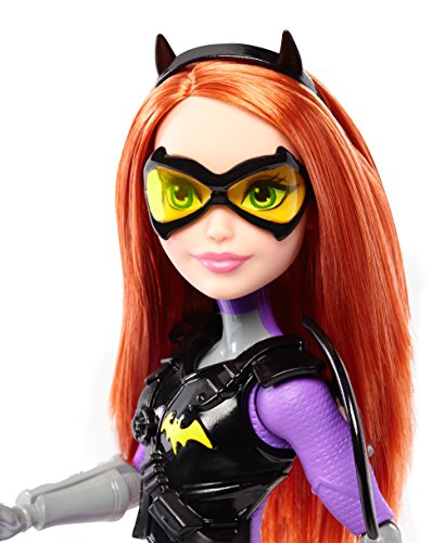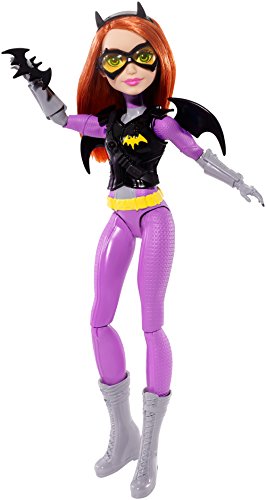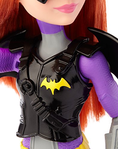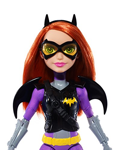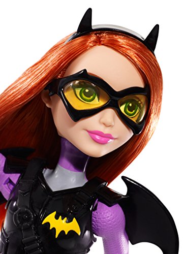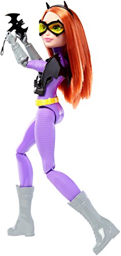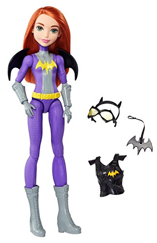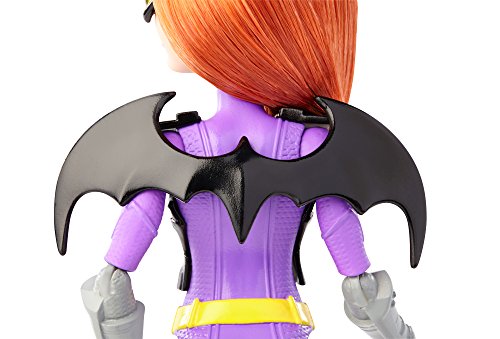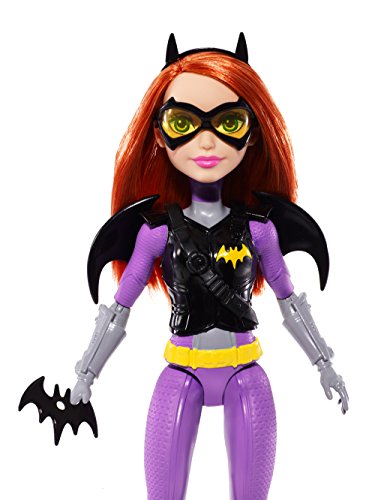 Take on any mission with the DC Super Hero Girls Batgirl action doll! Inspired by the powerful students of Super Hero High, the DC Super Hero Girls dolls are ready for any call to action with cool mission gear. Batgirl action doll comes with unique Super Hero gadgets that will help her save the day -- or get an A! The 12-inch action doll -- that can stand on her own -- sports a sleek look in signature colors and adorned with iconic symbols. The tech-loving genius looks smart and stealthy in purple and gray with gray boots and a golden bat symbol on her chest. Her cool mission gear includes a vest and bat-shaped glasses that matches her Super Hero look, black bat-shaped wings and a roped Batarang. Kids will love finding their own unique abilities along with the students of Super Hero High. From a surprise quiz to a Super Hero mission, learn to unleash these characters' powers and explore your own inner hero! Collect all of the DC Super Hero Girls action dolls to take on even bigger missions (each sold separately, subject to availability). Includes 12-inch Batgirl action doll with wings, vest, headgear and Super Hero gadget. Colors and decorations may vary.Feature