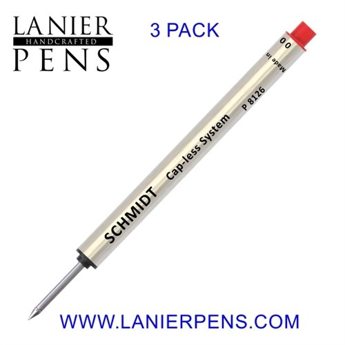 3 Pack - Schmidt P8126 Short Capless Rollerball - Red Ink