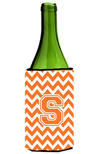 Letter S Chevron Orange and White Wine Bottle Beverage Insulator Hugger CJ1046-SLITERK