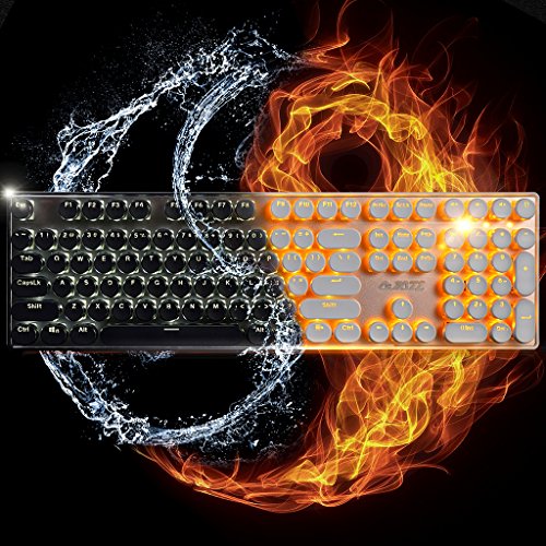 -. Feature : Mechanical Feel:Suspension keycap, clear tones, this keyboard has a similar user experience with a mechanical keyboard. / Gamer's Equipment:108 normal keys, strengthened space key, concave keycap. / Cool Background:Orange colors backlit with changeable breathing and brightness modes create a cool visual effect. / Ergonomic design, comfortable wrist rest minimizes fatigue. / Mechanical feel, concave keys surface for fast fingner tip response, high performance with competitive price.