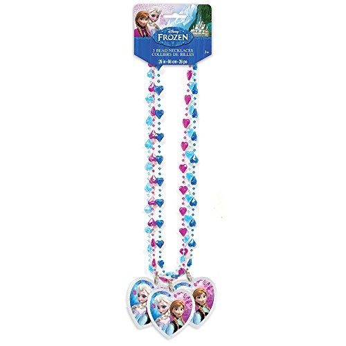 Your party guests will feel like princesses with these Disney Frozen Beaded Necklaces. Disney Frozen Necklace Favors feature heart shaped beads and an image of Disney princesses Anna and Elsa on a plastic heart shaped pendant. These necklaces make great Frozen theme party favors or prizes for exciting games at your child's birthday or Frozen theme party. Coordinate with other Disney Frozen party supplies and decorations from Unique to bring your Disney Frozen party ideas to life. Disney Frozen Beaded Necklaces come in a package of 3 and measure 26" long.Feature