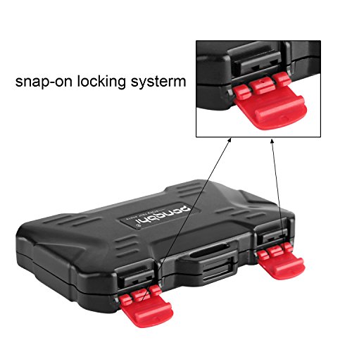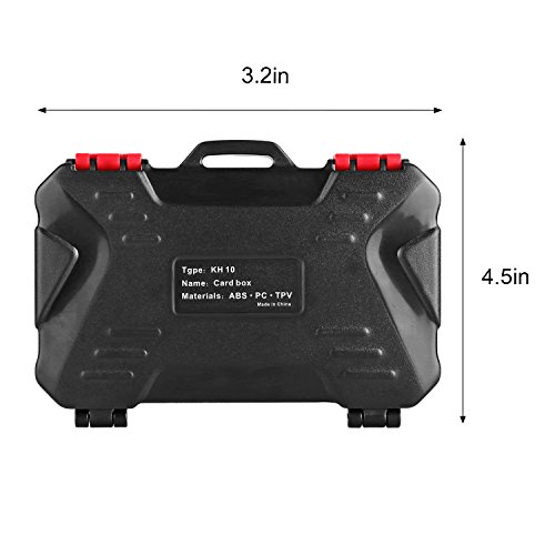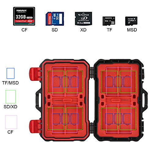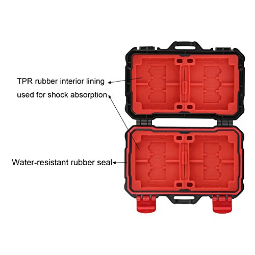 Studio : Pangshi Publisher : Pangshi Binding : Electronics Product Description Pangshi 24 Slots Memory Cards Case is a tough, water-resistant polycarbonate case made to carry and store memory cards. The case adopts a compact design. The Red water-resistant silicone seal keeps unwanted debris and water from entering the case. Specifications: -Material: ABS PC TPV -Color: black -Weight: 0.285lb -High capacity: 12 pieces of Micro SD cards, 8 pieces of SD cards, 4 pieces of CF cards