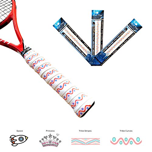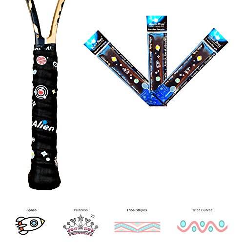 Alien Pros X-Dry Tennis Overgrip Tape perfect for your tennis racket, racquetball grip, squash racquet and more. 3-Pack, Tribe Curves Theme Design