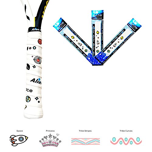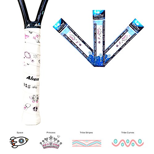 Alien Pros X-Dry Tennis Overgrip Tape perfect for your tennis racket, racquetball grip, squash racquet and more. 3-Pack, Princess Theme Design