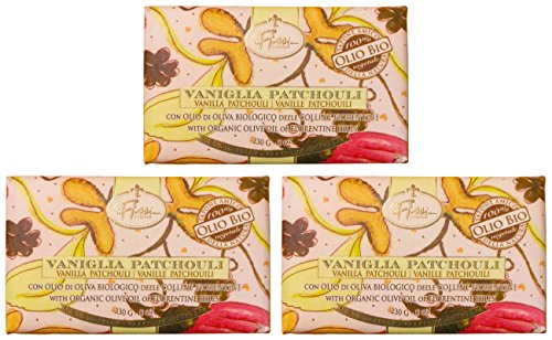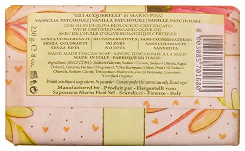 Saponerie Mario Fissi: Bar Soap with Vanilla and Patchouli, "Gli Acquerelli" Line - 8 Ounces (230g) Bars (Pack of 3) [ Italian Import ]