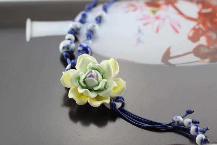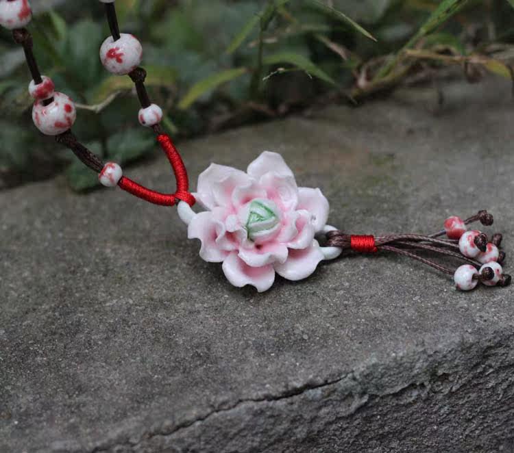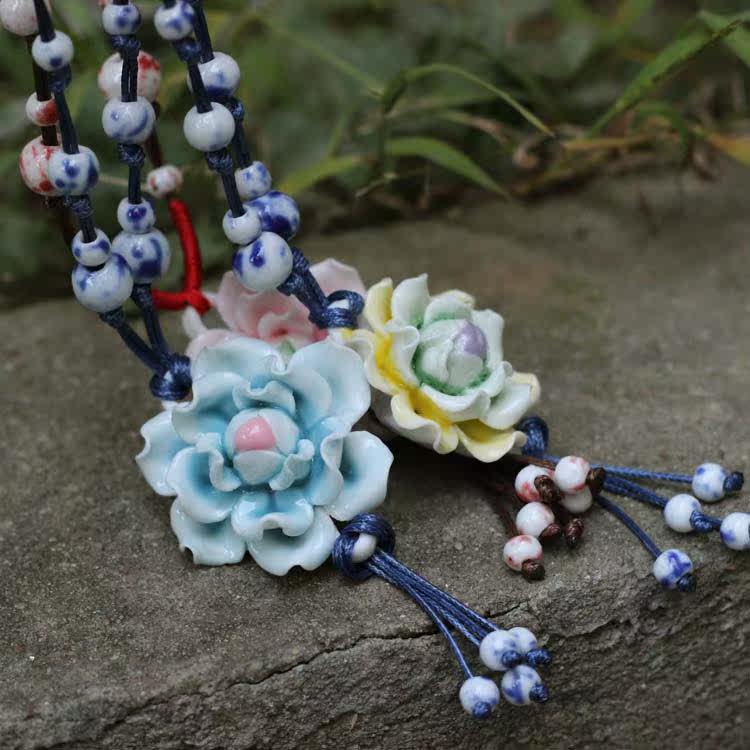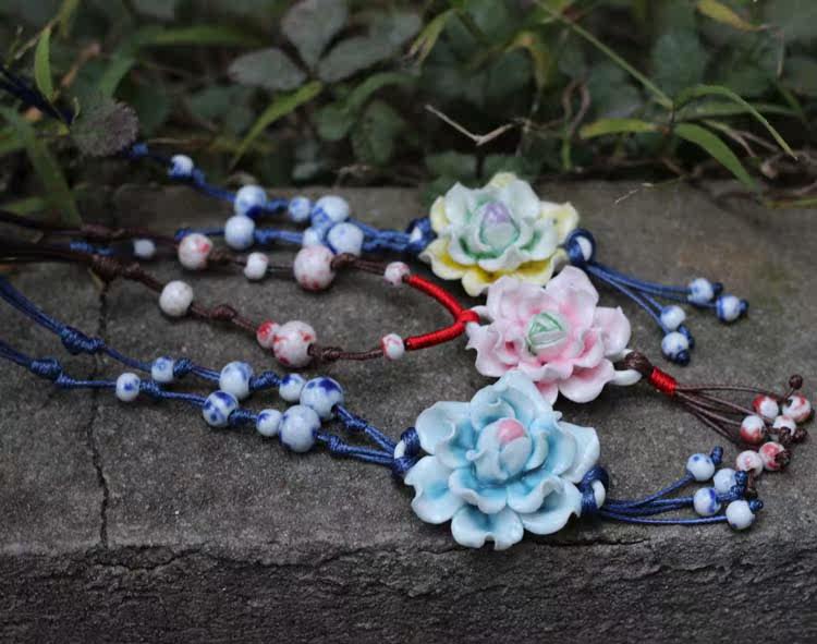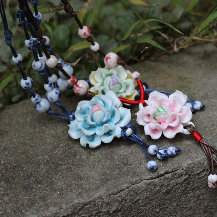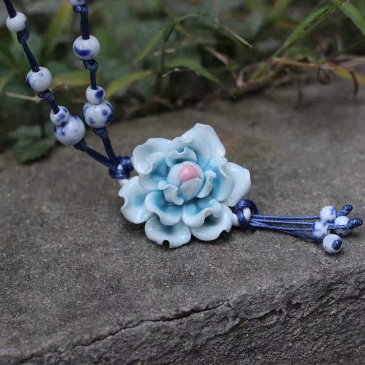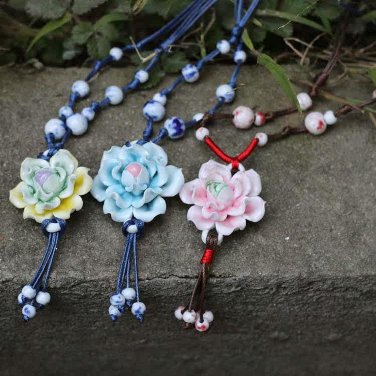 [Bloom] boutique bud national wind Jingdezhen Ceramic flower pendant necklace