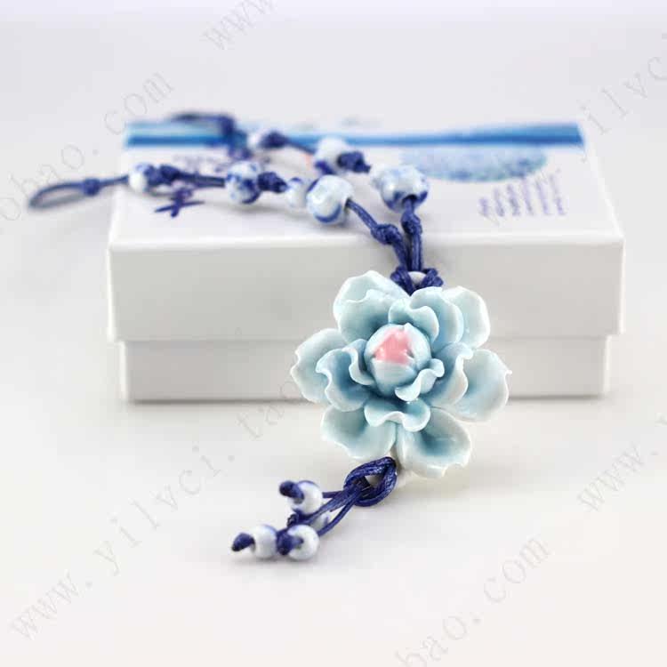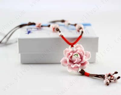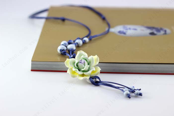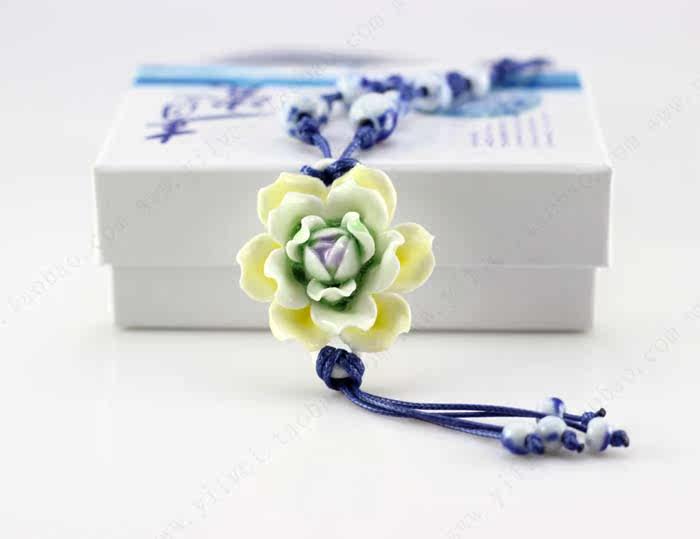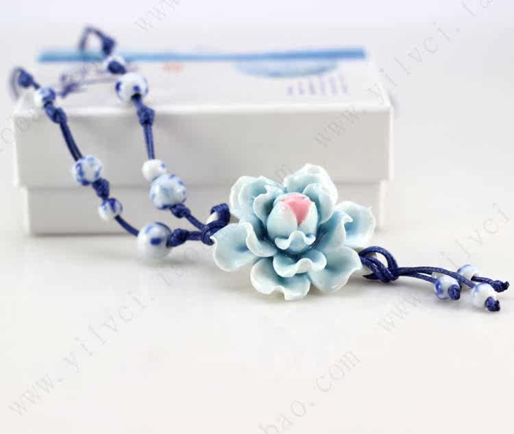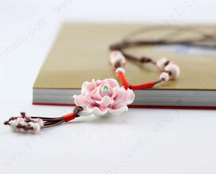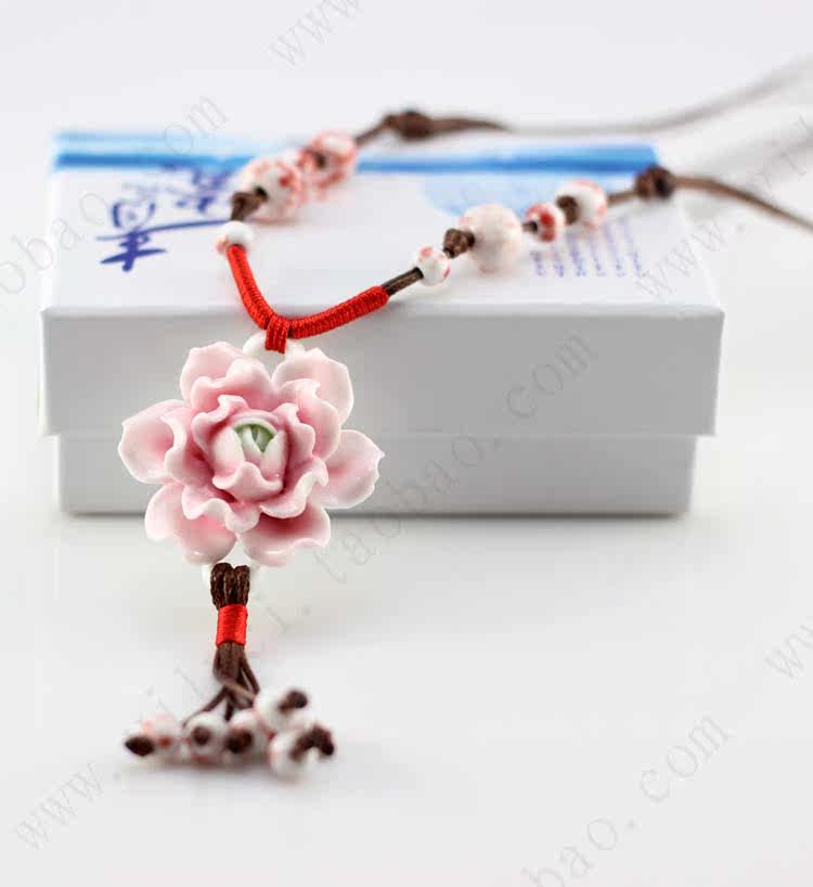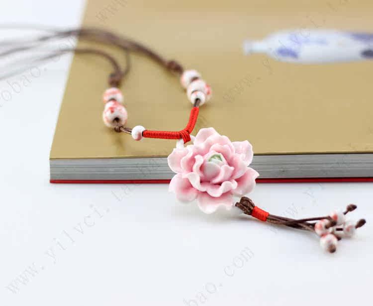 [Bloom] boutique bud national wind Jingdezhen Ceramic flower pendant necklace