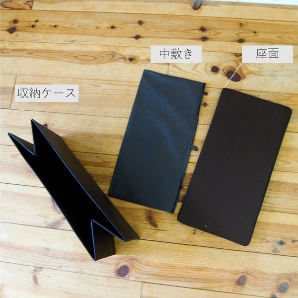 | 材質 | 座面 / ポリエステル、不織布、厚紙、4mmハードボード 収納 / 不織布、3mmハードボード |