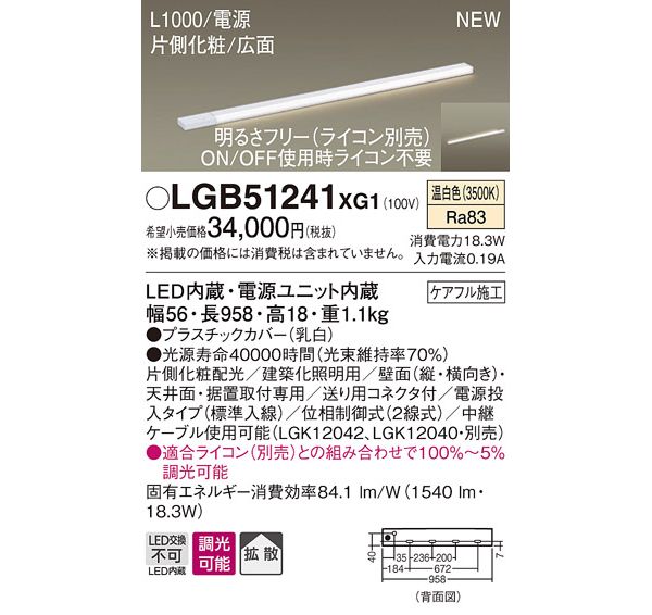 ●光源:LED(内蔵、温白色タイプ)、色温度:3500K、光源寿命40000時間(光束維持率70%)