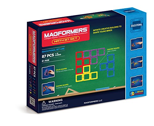 MAGFORMERS Math 87Pc set stimulates learning through magnetic construction. Aligning perfectly with S.T.E.M education, the activities utilize our always attracting magnets to solve math problems, such as, patterns, addition & subtraction and 2D nets to 3D structures. The set contains 12 different geometric shapes including squares and triangles, rectangles and trapezoids through to our super MAGFORMERS squares and triangles. Use the included 50 page math book to layout the MAGFORMERS shapes and complete the mathematical challenges!.Feature