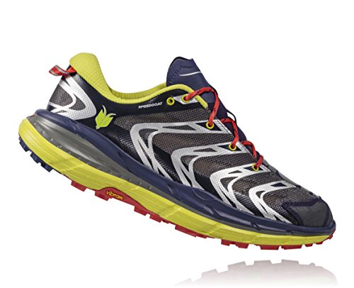Studio : Hoka One One Publisher : Hoka One One Binding : Shoes Product Description For a seamless blend of performance and style, get the Hoka One One Speedgoat men athletic shoe. Sporting lightweight no sew SpeedFrame construction, this shoe features rubber toecap for maximal protection, welded synthetic and microfiber overlays for optimal support and plush comfort. It has a durable, injection molded EVA midsole with Meta-Rocker Geometry to help you take on all technical terrains with ease. Finally, it has a Vibram rubber outsole with 4mm lugs and Trail Specific Outsole Flex Grooves for improved stability and steady grip on both wet and dry surfaces. Add some soft cushion to your every step with this Hoka One One Speedgoat men athletic shoe. 0