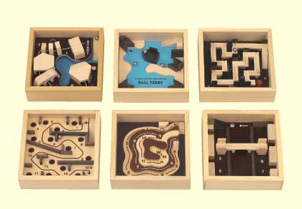 上下左右に動かし、中の玉を転がしながらゴールを目指す6種のゲーム。手を動かしながら目で玉を追いかけ、瞬時に力の加減をしなければなりません。リハビリ効果に!