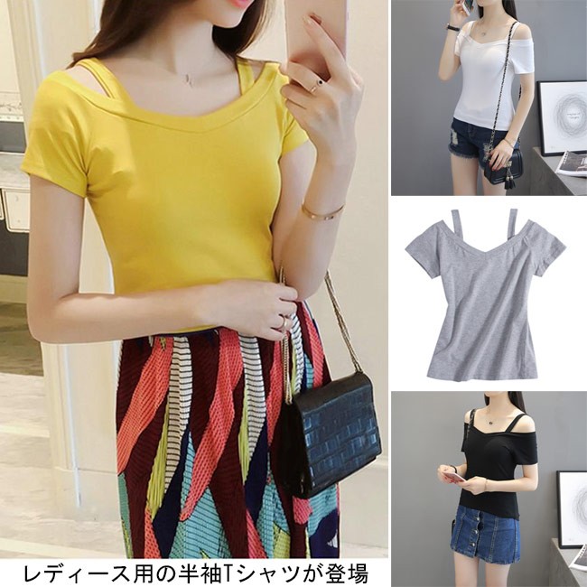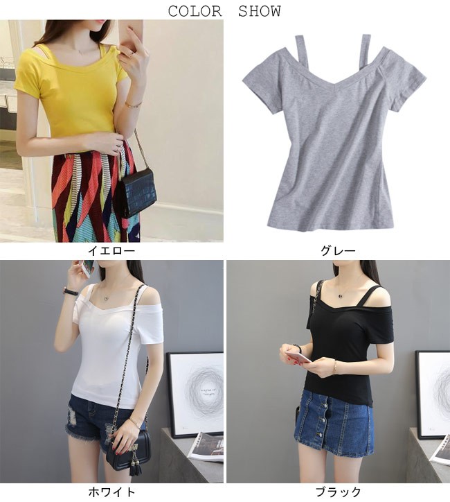 半袖Tシャツ オフショルダー レディース スリムシルエット 女性用 Tシャツ Vネック 半袖 肩出し セクシー トップス 夏物 キュートレディース用の半袖Tシャツが登場吸湿性・通気性に優れた綿混紡素材を使い、ソフトで爽やかな肌触りをもたらす肩出しのデザインで少女ならではの甘さを演出襟部分に緩やかなV字型はとても優雅な雰囲気を醸し出すスリムシルエットで美しいボディーラインを引き立てる雰囲気異なる4色展開が用意され、お好みやコーデ次第で選べるカラー:イエロー グレー ホワイト ブラック素材 綿混紡サイズ(cm) S M L XL 2XLS 着丈(肩ベルト含まず)36 バスト76M 着丈(肩ベルト含まず)37 バスト80L 着丈(肩ベルト含まず)38 バスト84XL 着丈(肩ベルト含まず)39 バスト882XL 着丈(肩ベルト含まず)40 バスト92ご注意:※サイズは平置きサイズです。素人採寸ですので、若干の誤差がございます、ご了承ください。