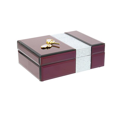 Deco 79 35742 Wood and Glass Jewelry Box, Maroon/Silver