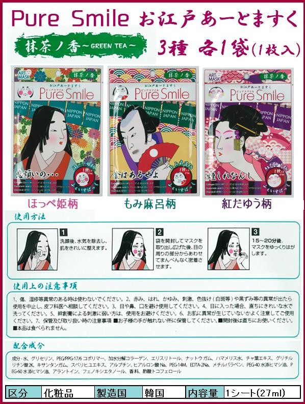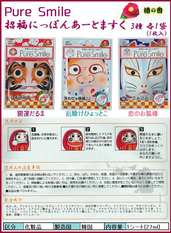| 製造(販売)者情報 | 【お江戸あーとますく(ほっぺ姫柄、紅だゆう柄)、戦国あーとますく、招福にっぽんあーとますく】 発売元:株式会社サンスマイル 製造販売元:株式会社ドレスティック 【お江戸あーとますく(もみ麻呂柄)】 発売元:株式会社サンスマイル 製造販売元:株式会社High&High |