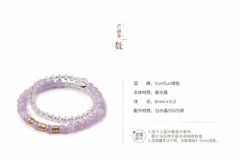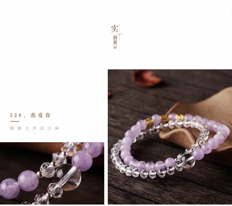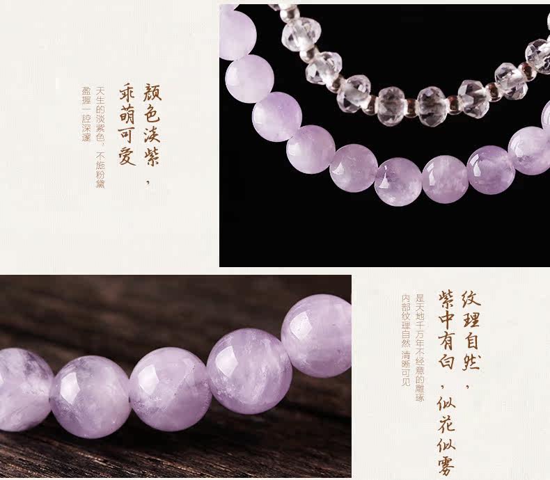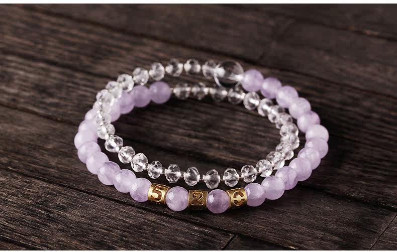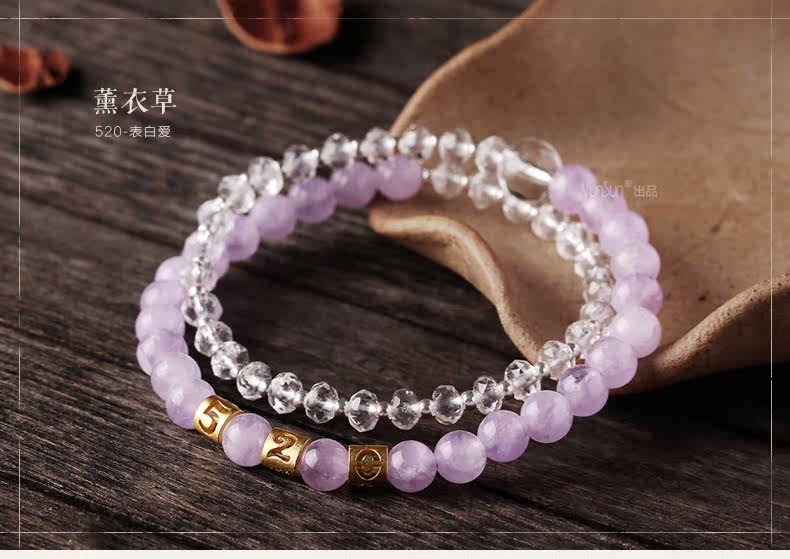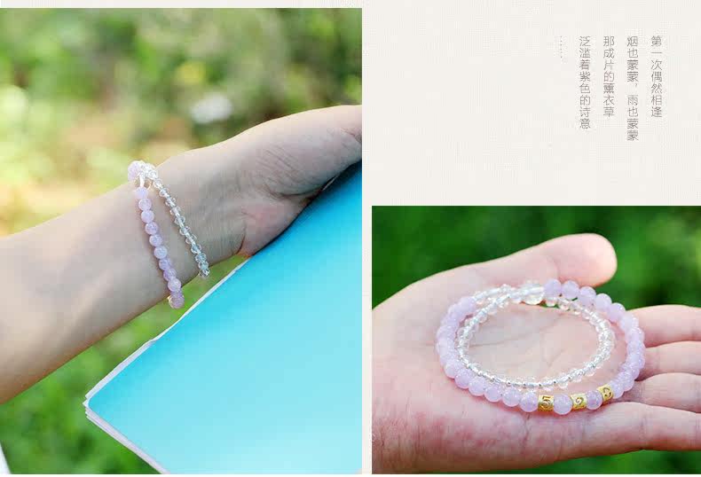 天然紫水晶手链女多圈薰衣草紫晶手串925银 清新文艺饰品