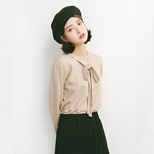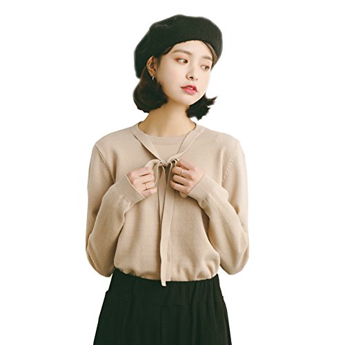 -. Title : Ensasa Fashion セーター レディース 長袖 ボウタイ リボン 可愛い ニットトップス ゆったり 無地 秋冬 ニットセーター
