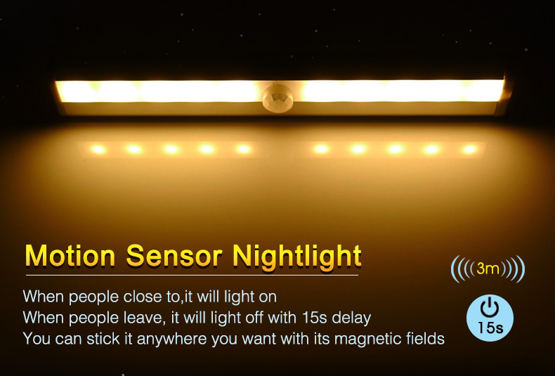 Wireless LED Night Light 10LEDs Anto Motion Sensor Closet Cabinet Light IR Infrared Induction Night Lamp Kitchen Stairs Lighting