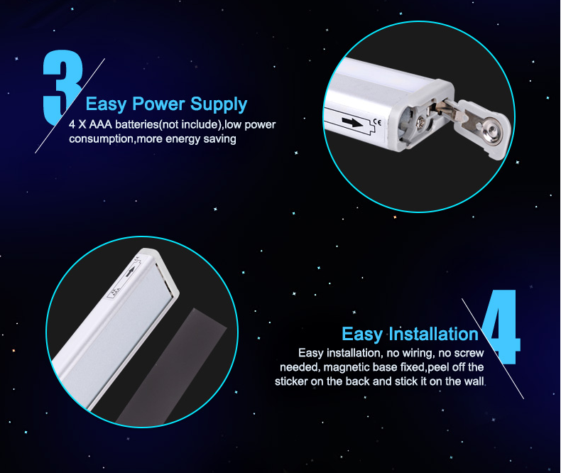 - 3.u0026nbsp;Easy installation,u0026nbsp;no wiring, no screw needed,you can stick it anywhere you want withu0026nbsp;adhesive stripu0026nbsp;u0026amp; magnetic fields.