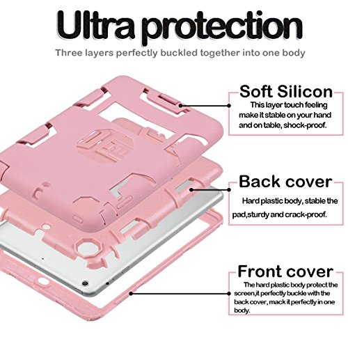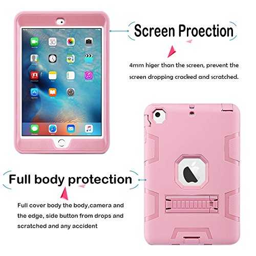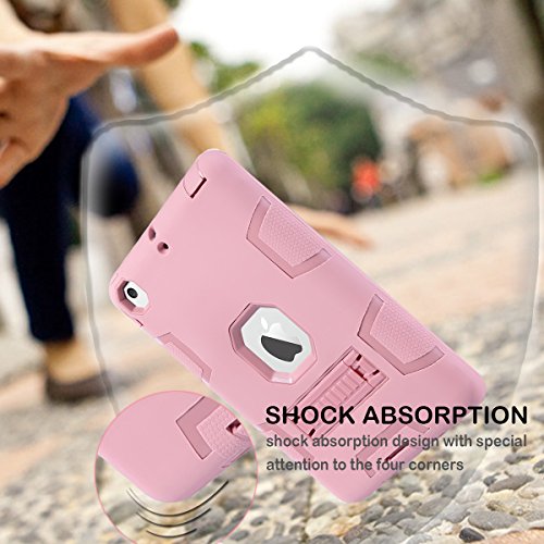 MAKEIT CASE iPad Mini Case iPad Mini 2 Case Shock-Absorption Three Layer Armor Defender Full Body Protective Case with Kickstand Feature for Ipad Mini 1 2 3 (Rose Gold)