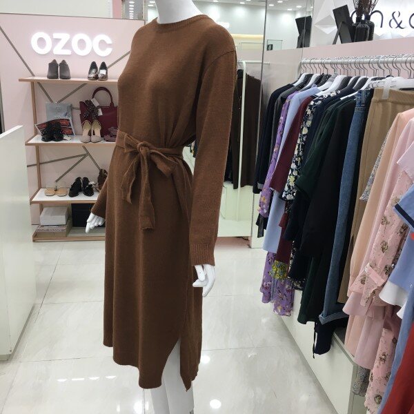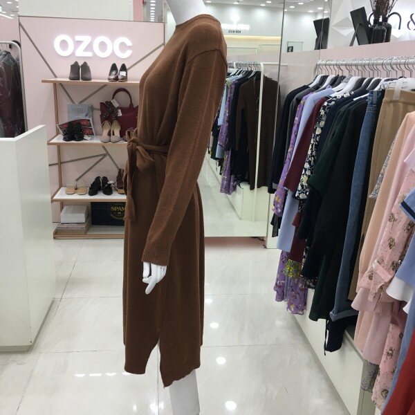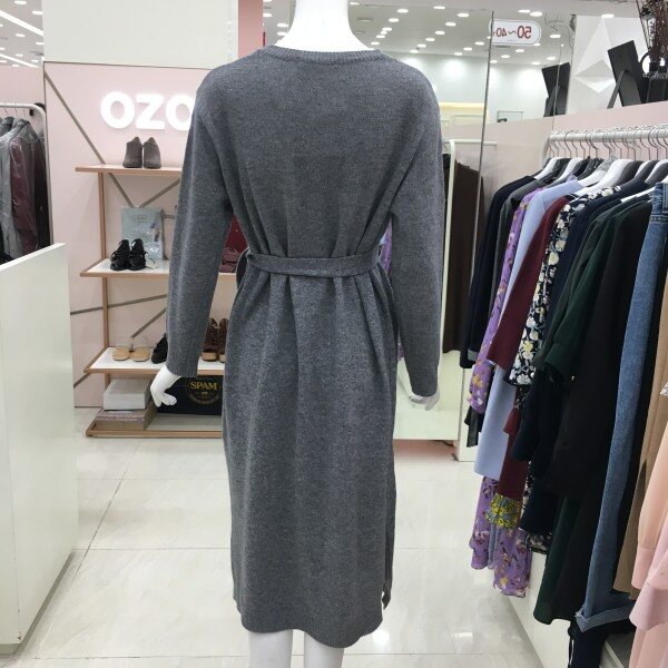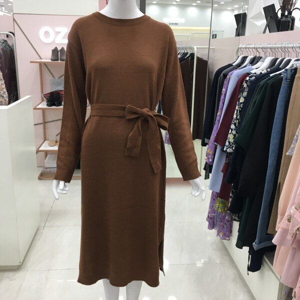 루즈핏의 롱 니트 원피스입니다.밑단 양쪽에 슬릿 디테일과 허리 스트랩을 활용하시면 더욱 여성스러운 느낌으로 입으실 수 있습니다.