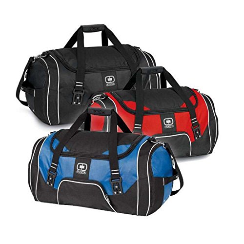 -. Feature : Available colors: Black, Red, Royal. Material: 420D dobby poly/600D poly. Size: 13" x 24" 12" / Front zippered pocket, Ventilated shoe compartment with grab handle / Large U-shaped opening and compartment, Custom-molded handle / Side-zippered accessory pocket, Padded shoulder strap, All metal hardware / Capacity: 3,800 cu.in./62.3L, OGIO design