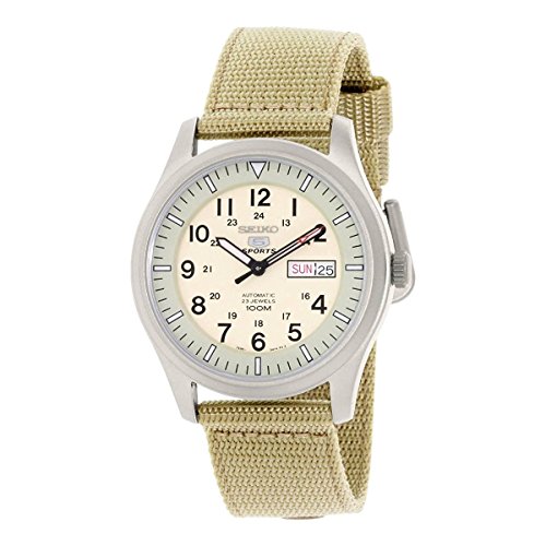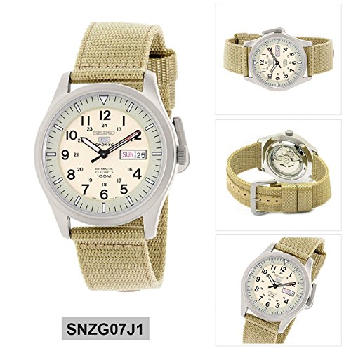 This 5 Automatic watch by Seiko is sure to keep you wanting to buy more watches by this splendid manufacturer This watch is crafted with a 42MM stainless steel case that is durable and sure to last With this timepiece having a remarkable gold nylon band which allows it to be worn on a daily basis makes this watch even more irresistible The beige dial and beautiful hardlex crystal enhances the features of this timepiece as a wholeFeature