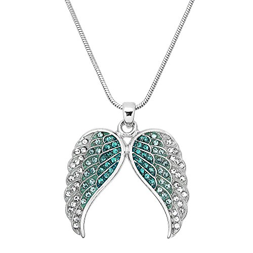-. Title : Angel Wing Pendant Necklace Rhinestone Crystal High Polished Rhodium J0317-AQ