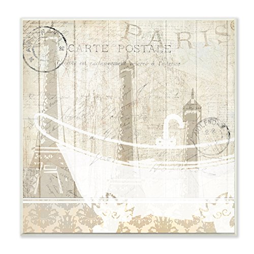 Stupell Home Décor Vintage Carte Postal Tub Wall Plaque Art, 12 x 0.5 x 12, Proudly Made in USA