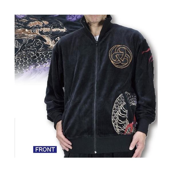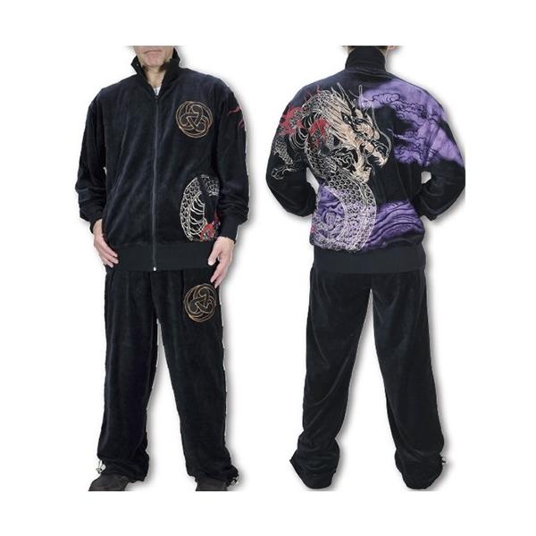 迫力の金龍神刺繍が圧巻!!究極の和柄上下セットアップ!毛足のあるやわらかベロアのあったかリラックスウェアが和柄人気ブランド「絡繰魂」より登場! 「絡繰魂」の和の真髄デザインを生かし、最高の着心地、最高の肌触りを実現したリラックス上下セットが登場!霞に現れた荒れ狂う龍神の様はまるで絵画のよう! センターフルジップだから脱ぎ着しやすく、パンツもウエストゴム仕様(ヒモ調整可)で楽らく! ワイルド感たっぷり男のセットアップ! 『絡繰魂』・・・日本古来の和柄に刺繍・抜き染プリントを駆使し、独特の風合いと世界観を展開し幅広い世代に支持される人気ブランド!!■材質:ベロア
