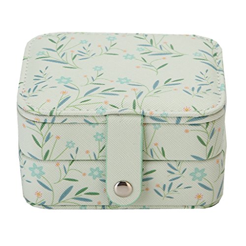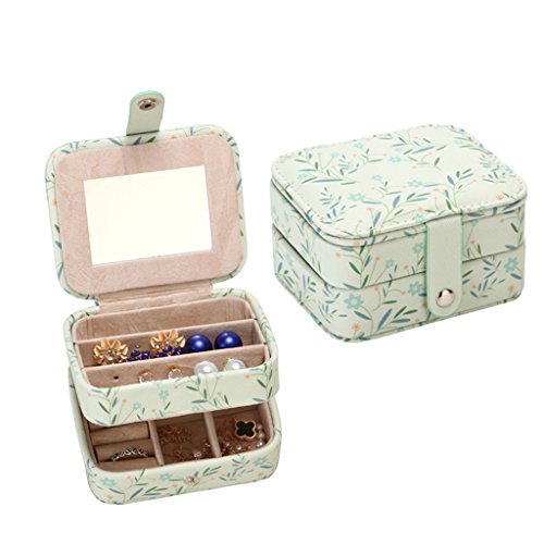 Fvstar Travel Jewelry Necklace Organizer Girls Earring Ring Holder Jewelry Storage Case with Mirror in Rainforest Style (Light Green, Small)