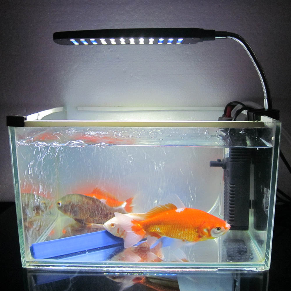 Rotate the two screws according to the width of the tank to fix the lamp.