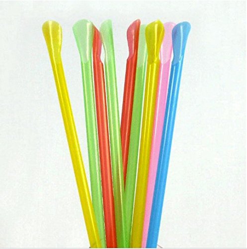 -. Title : (100-Pack) Colorfu Neon Plastic Drinking Spoon Straws Unwrapped, Assorted Neon Colors Disposable Plastic Straw, 9-1/2"