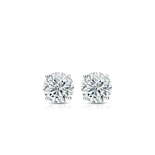 -. Title : Platinum Round Diamond Stud Earrings 4-Prong (1/4 cttw, G-H, SI1-SI2)