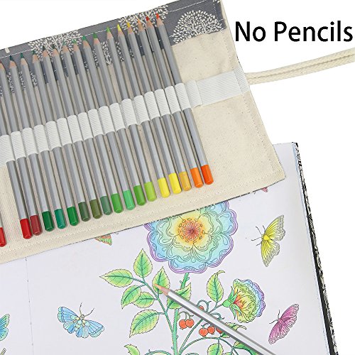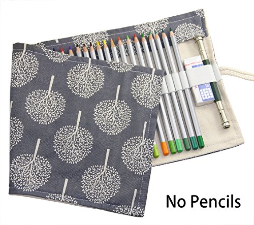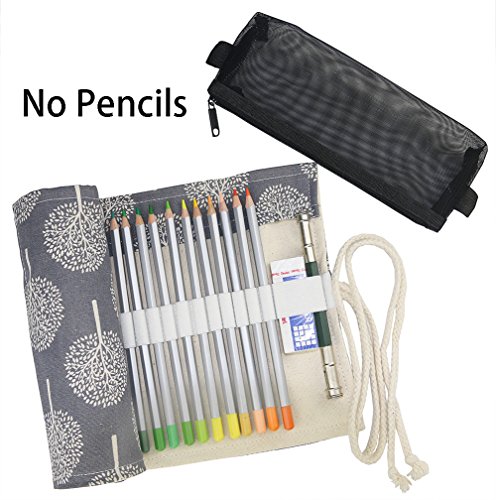 Hz.Codelo Canvas 72 Colored Pencils Wrap With a Mesh Bag, Travel Pencil Holder Roll up Case, Gel Pen Organizer, Great for Kids Adult Coloring Book -ArtTrees (NO Pencil included)