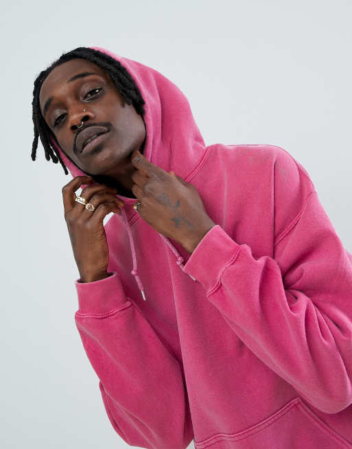 Reclaimed Vintage inspired oversized overdye hoodie in pink