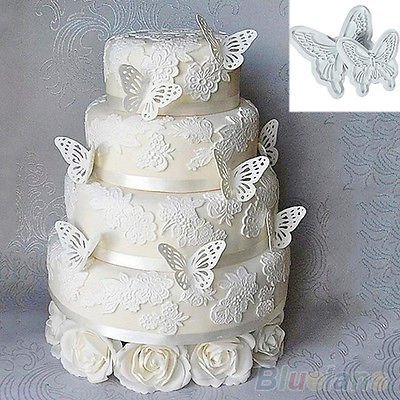 HI-BOOM 2 Pcs Butterfly Fondant Cakes Decorating Sugar craft Cookie Plunger Cutters Mold, White