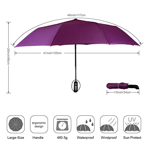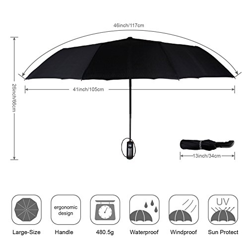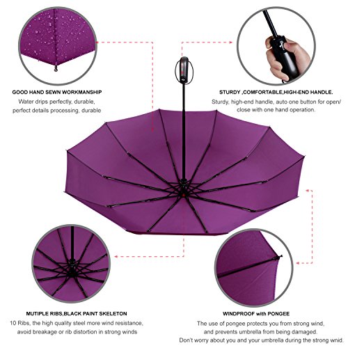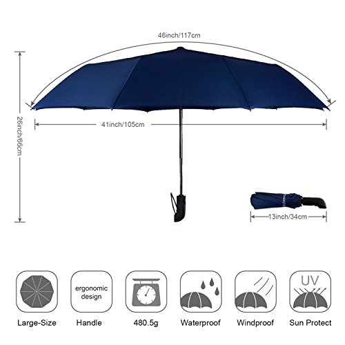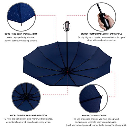 Travel Umbrella Golf Umbrella, Rdxone 10 Ribs Unbreakable Compact Automatic Windproof Large Umb...
