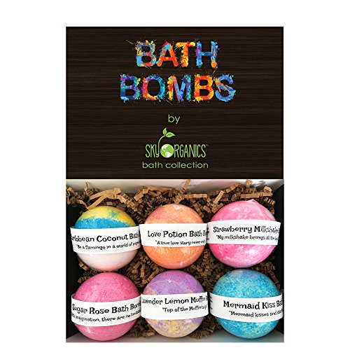 Bath Bombs Gift Set by Sky Organics, 6 x 5 Oz Ultra Lush Huge Bath Bombs Kit, Best for Aromatherapy, Relaxation, Moisturizing with Organic & Natural...