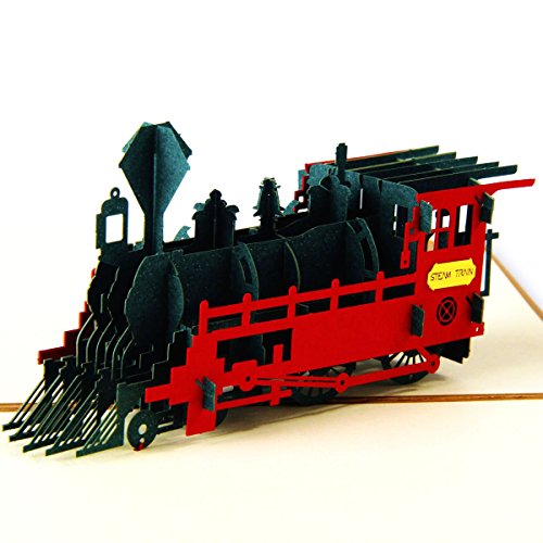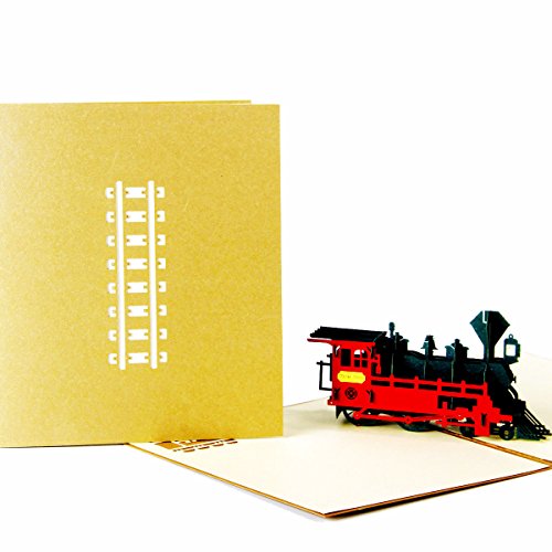 Paper Spiritz Train 3D Pop up Greeting Card Postcard Matching Envelope Laser Cut Handmade Happy New Year Birthday Post Card Spring Festival Valentine's Day Gift(Pack of 1)
