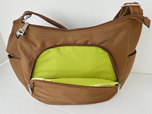 This Anti-Theft Hobo Bag from Travelon is a traveler's security blanket with plenty of features to protect your valuables when you're away. Slash-proof, locking main and front compartments keep thieves at bay. Cut-proof shoulder strap attaches to chair or post. RFID blocking card slots provide a necessary spot for your credit cards. Front slash pocket and zip rear pocket create extra space. The 2 mesh expansion pockets hold water bottle & umbrella. Removable LED light.Feature