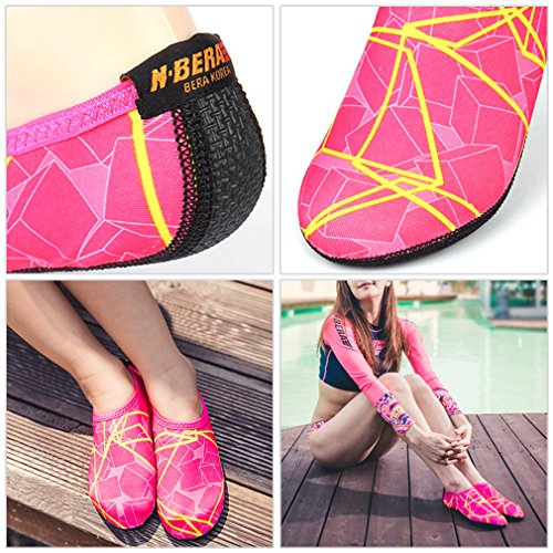 -. Binding : Apparel -. Brand : JustOneStyle -. Department : womens -. Feature : 85% polyester, 8% polyurethane, outsole:100% neoplan / Useful transparent zipper bag / Extra light weight / Dry off quickly / excellent flexible & comfortable like a socks / Outsole is noneslip.use in pool to walk , at gym or more situation. -. PackageQuantity : 1 -. ProductGroup : Shoes -. ProductTypeName : SHOES -. Title : NBERA Barefoot Flexible Water Skin Shoes Aqua Socks for Beach Swim Surf Yoga Exercise