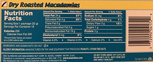 Mauna Loa Dry Roasted Macadamia Nuts with Sea Salt Snack Size 1.15oz (Pack of 18)